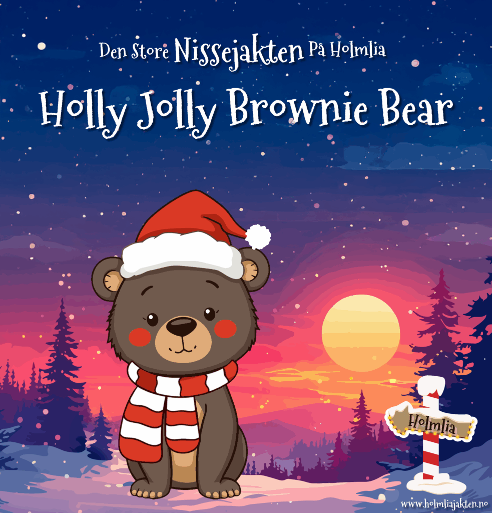 Holly Jolly Brownie Bear ble en gang i tiden tatt under vingene av Nissen og har stor betydning for Nissen. Nissen er selvfølgelig glad i alle dyr, men hjertet hans blir litt ekstra varmt når Holly Jolly Brownie Bear er rundt han og gir han sine gode bjørneklemmer bare han kan. I år så gjemmer Holly Jolly Brownie Bear seg og er med på årets nissejakt, og siden han frøs så mye når han var liten så liker han seg best innendørs om vinteren. Han er ikke som alle andre bjørner som sover i hi, han syns alt er superspennende og vil ikke gå glipp av noe så han hopper rett som det er over vinterdvalen. Hele historien til Holly Jolly Brownie Bear kommer senere om nissen får tid i jaktens hete og søken etter Grinchens herjinger og gaver.